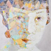 I am asked often why I paint faces with so many unrealistic colors. I want to answer this question with another one. How is that someone can see a face when it is painted this way and furthermore see the expression on this “face”? This is what interests me. When I crack the plaster medium I use, I am looking for someone. I have an image in mind when I start, but I let the more or less random lines and cracks and the resultant sections guide me and challenge me to find a person within the constraints of what is given. So the painting never ends up being what I started with. The process leads me to discover someone previously unknown.